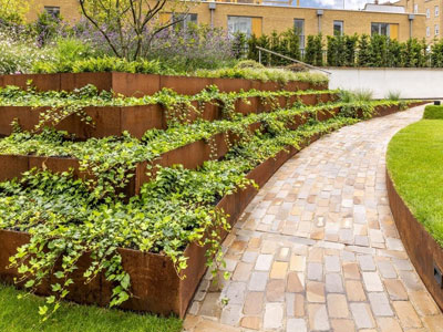 景观设计:耐候钢种植池 +花园庭...