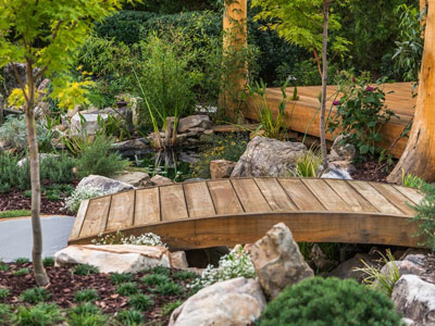 景观设计:弧形小木桥 +花园庭院