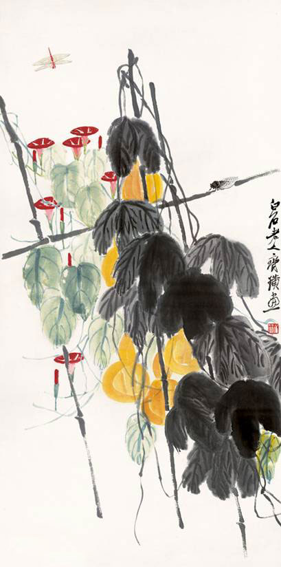 齐白石-葫芦牵牛花图_合肥室内名家画配画