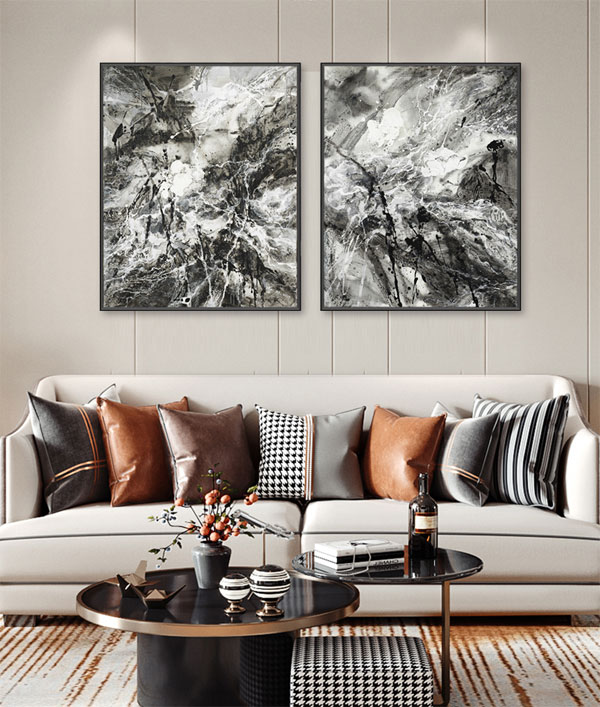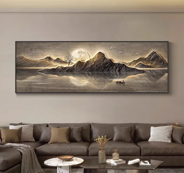 现代轻奢客厅装饰画_高级感大气山水画_横版背有靠山沙...