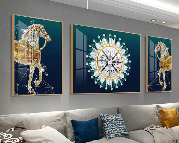 客厅装饰画_欧式轻奢沙发背景墙挂画_马高档三联画_马...