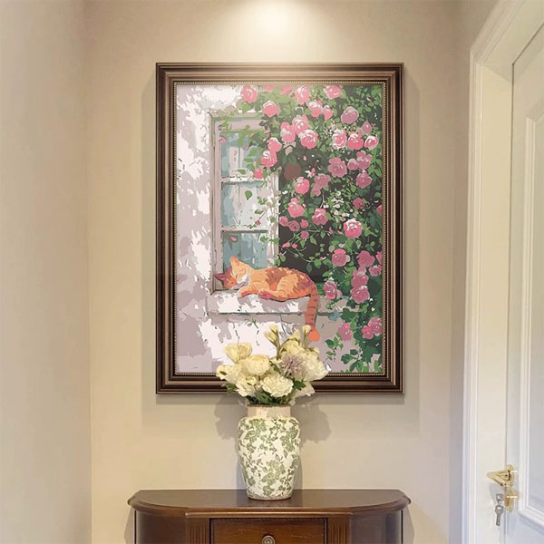 美式高档玄关装饰画_玫瑰花卉中古复古油画_入户走廊过...