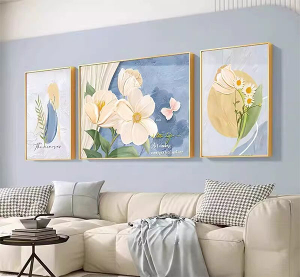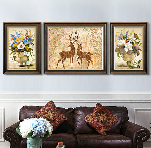 客厅装饰画_美式沙发背景墙画_欧式三联挂画_大气轻奢...